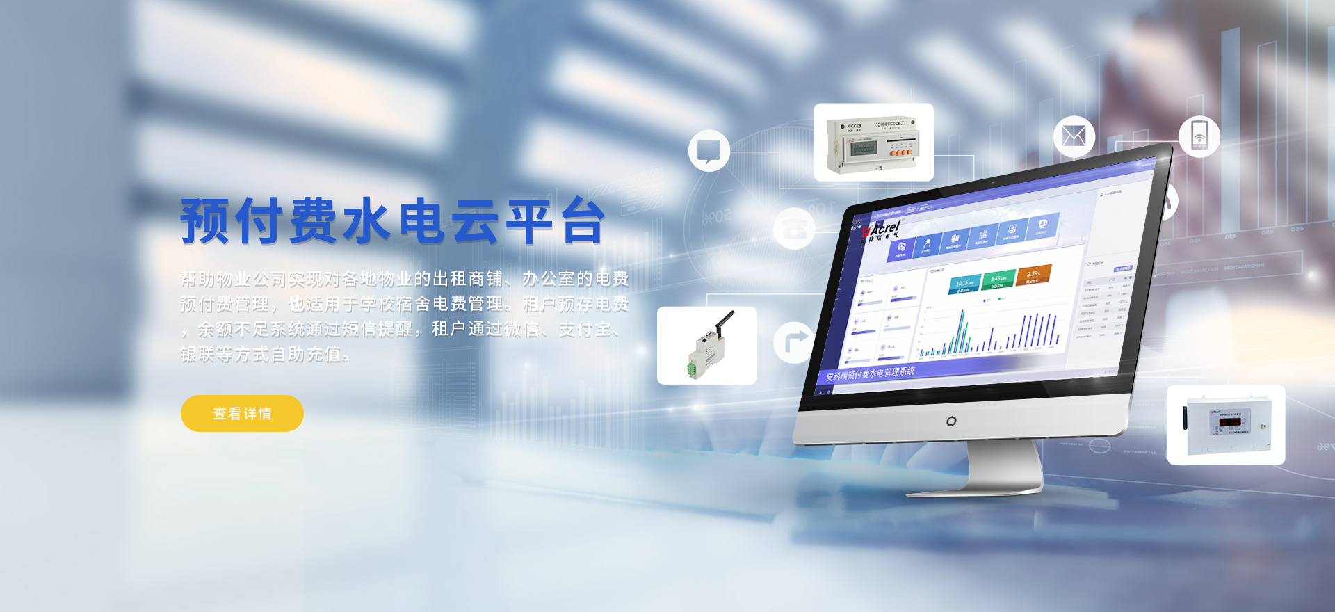 安科瑞提供的解決方案包括Acrel-EIoT能源物聯網云平臺、變電所運維云平臺安全用電管理云平臺、環保用電監管云平臺智慧消防云平臺、能源管理云平臺、工業企業能源管控平臺、遠程預付費云平臺、餐飲油煙監管云平臺、電動汽車/電瓶車充電樁收費管理云平臺、電力監控/無線測溫系統、電能質量治理系統、電氣火災監控系統消防設備電源監控系統防火門監控系統、應急照明和疏散指示系統、智能照明控制系統、醫用隔離電源絕緣監測系統等,幫助用戶實現能源智能化、可視化、精細化管理,提高用能效率和用能安全,為企業節能降耗和實現能源數字化建設提供數據服務。